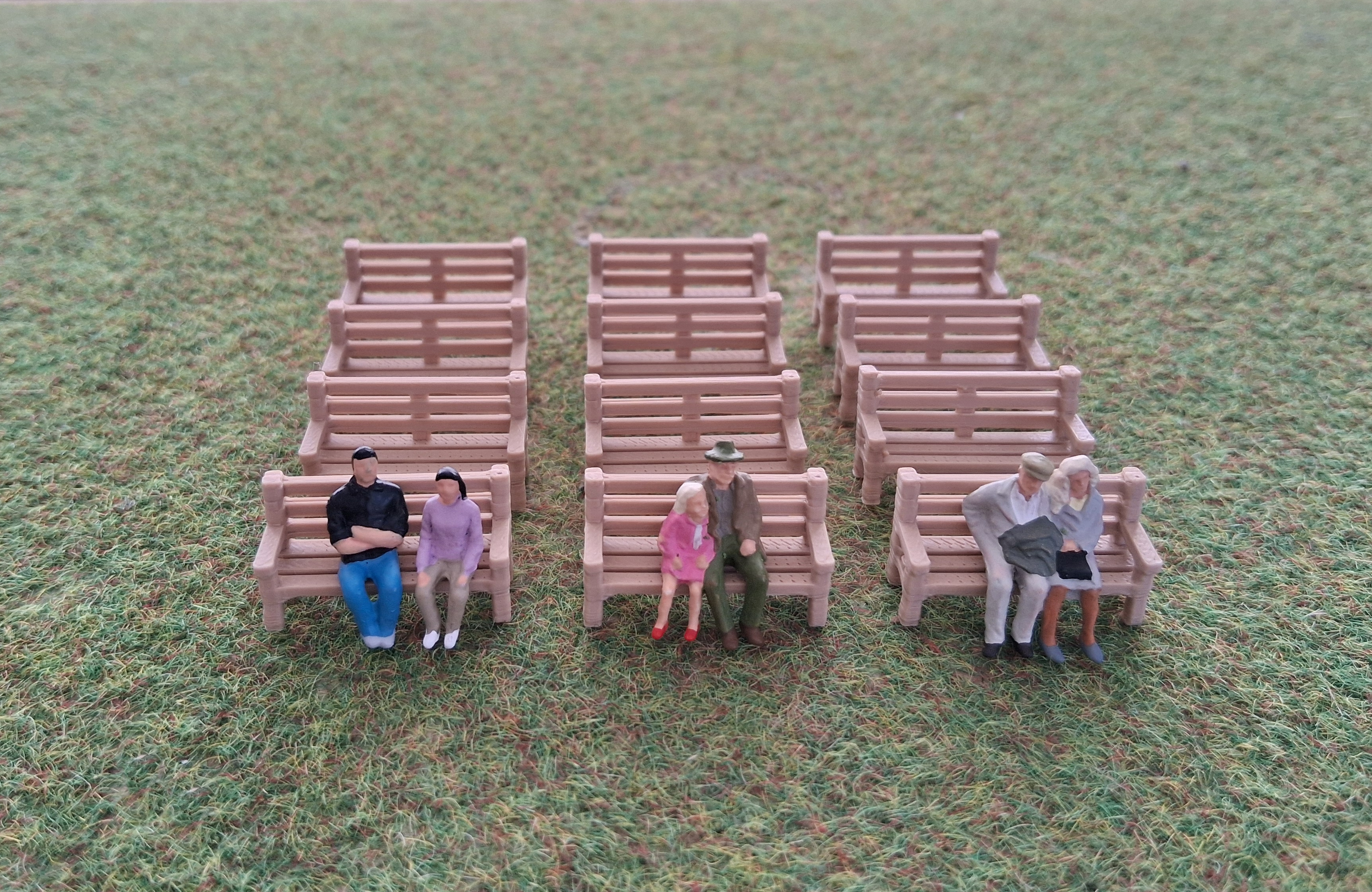 These benches come ready to place on your layout, they will make a nice addition to any garden, street, station or park area.