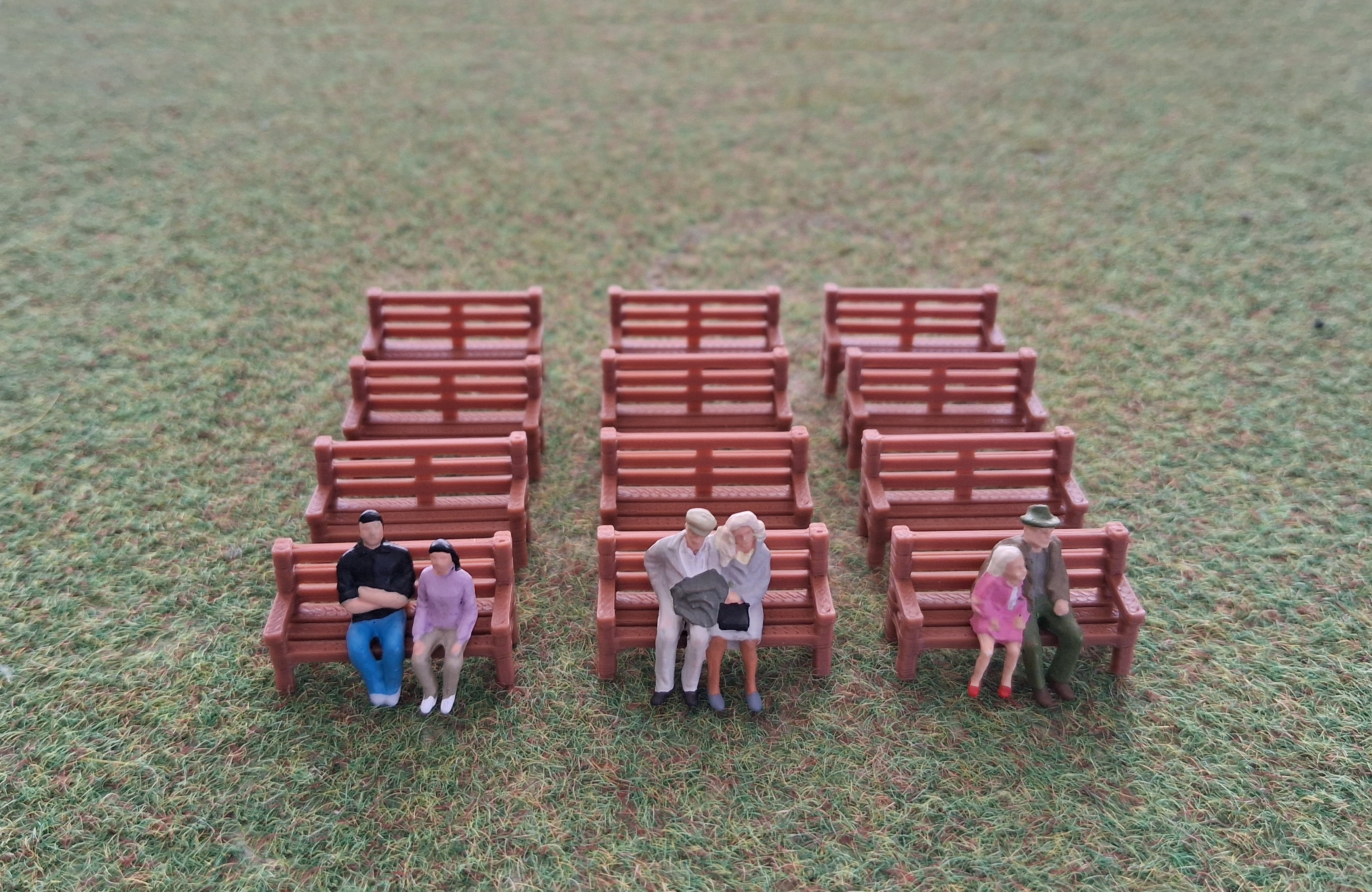 These benches come ready to place on your layout, they will make a nice addition to any garden, street, station or park area.
