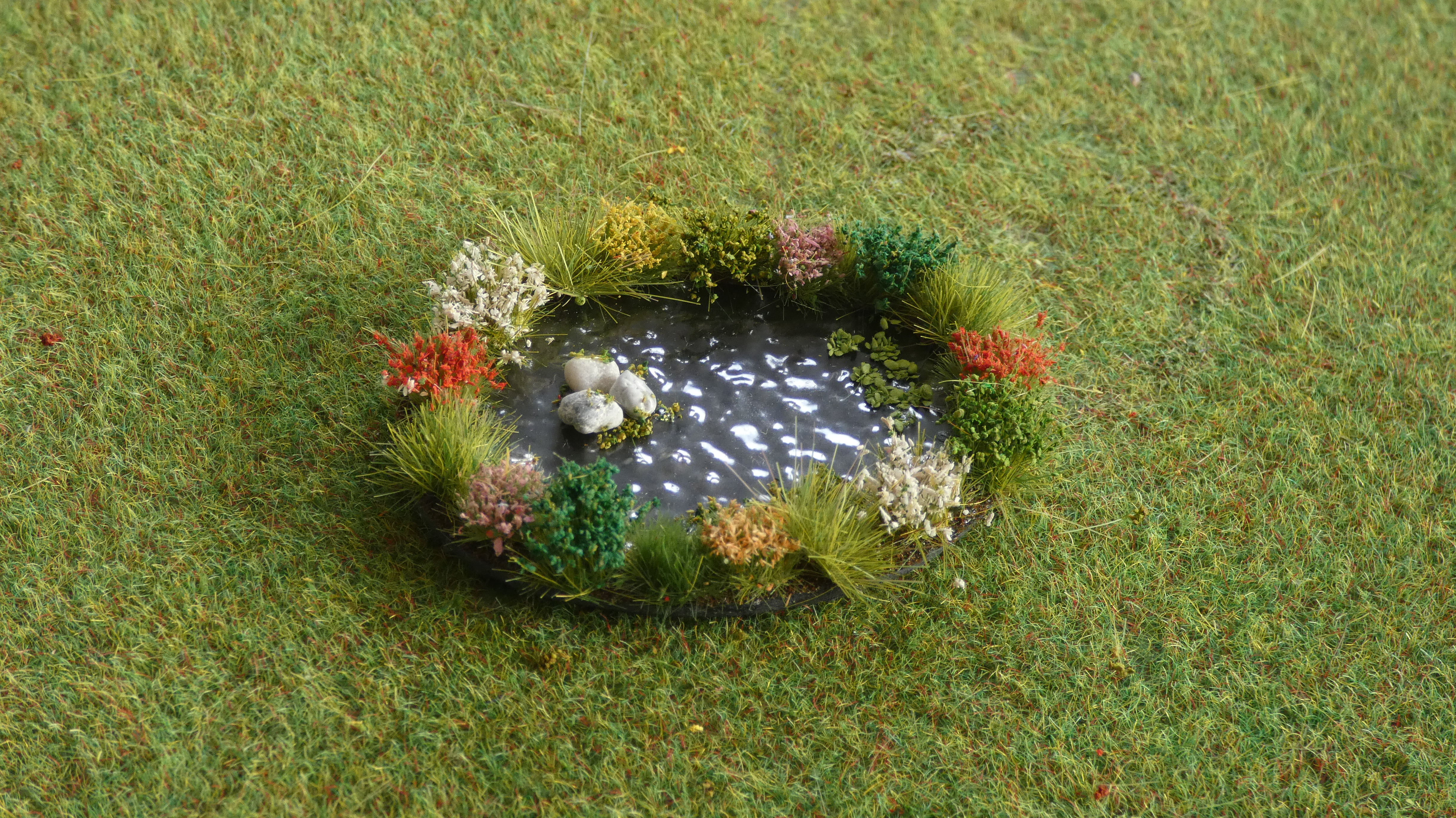This Ornamental pond is ready made and easy to add to a '00' or 'N' gauge layout.